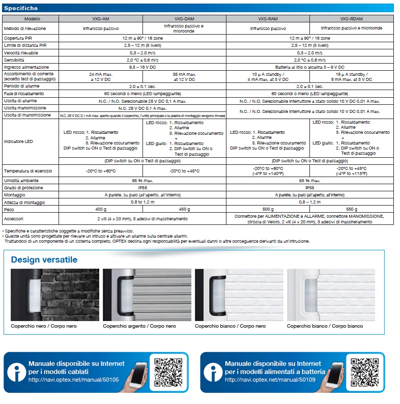 VXSRDAMW RIVELATORE DOP.PIR-MW DA ESTERNO VIA RADIO PORT.12MT 90° ANTIMAS. OPTEX